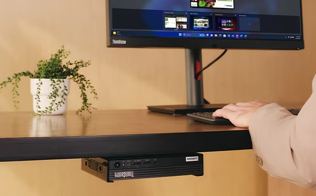 Bei Lenovo entwickeln wir echte Lösungen für echte Menschen, die in einer Vielzahl von Branchen und Umgebungen arbeiten, innovativ und hervorragend sind. Darum entwickelten wir vor Jahren den ersten 1L Tiny Desktop und den platzsparenden Tiny in One (TIO). Wir möchten weiterhin noch leistungsfähigere Geräte designen, die sich nahtlos in die heutigen sich verändernden und kleiner werdenden Arbeitsbereiche einfügen. Der neueste ThinkCentre M70q ermöglicht große Ideen mit bis zu Intel® Core™ i9 Prozessoren, die Leistung, Geschwindigkeit und Potenzial auf Unternehmensebene in einem Desktop bieten, der so klein ist, dass er fast überall hineinpasst. In Kombination mit TIO bietet der ThinkCentre M70q noch mehr Wert und kostengünstigere UpgradeOptionen. Der ThinkCentre M70q kombiniert Sicherheits- und Verwaltbarkeitsfunktionen, von Unternehmensbüros über Einzelhandelsverkaufsflächen, Gesundheitswesen- bis hin zu Hoteleinrichtungen.