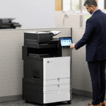 Der Lexmark XC4352 ist auf Leistung, Sicherheit und Benutzerfreundlichkeit für mittlere bis große Arbeitsgruppen ausgelegt und erreicht eine Geschwindigkeit von bis zu 50 Seiten pro Minute*. Beidseitiges Scannen in einem Durchgang, Ultraschallsensor zur Erkennung von Mehrfacheinzügen und ein 25 cm großer, tabletähnlicher Touchscreen machen die Bearbeitung Ihrer Druckaufträge einfach. Ersatzpatronen/-druckkassetten mit Unison™-Toner bieten eine Reichweite von bis zu 25.000/14.200 Seiten in Schwarz und Farbe**, damit Sie nicht aufgeben müssen.