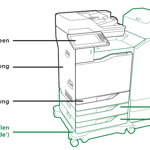 beim Drucken und Kopieren von Schwarzweiß und Farbseiten. Der verbaute Vorlageneinzug