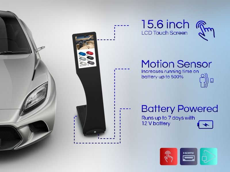 Die SWEDX Signo Stele hebt Ihr Marketing auf eine neue Ebene und sorgt dafür, dass Ihre Produkte/Dienstleistungen optimal und kostengünstig präsentiert werden. Das Produkt besteht aus einem 15,6 Zoll, wahlweise mit Touch oder LCD-screen. Folgende Eigenschaften machen die Signo Stele zu einem Muss für Ihr Marketing: